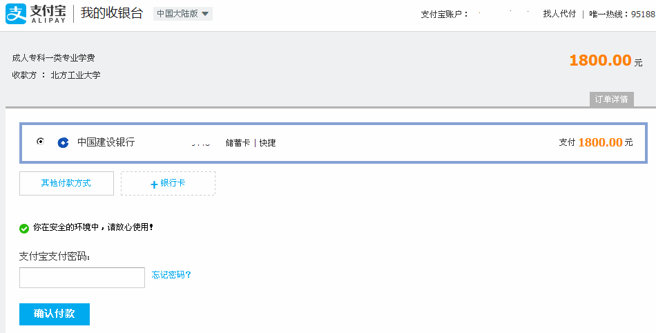 我校北京地区全体在校生的学费均通过支付宝线上缴费。