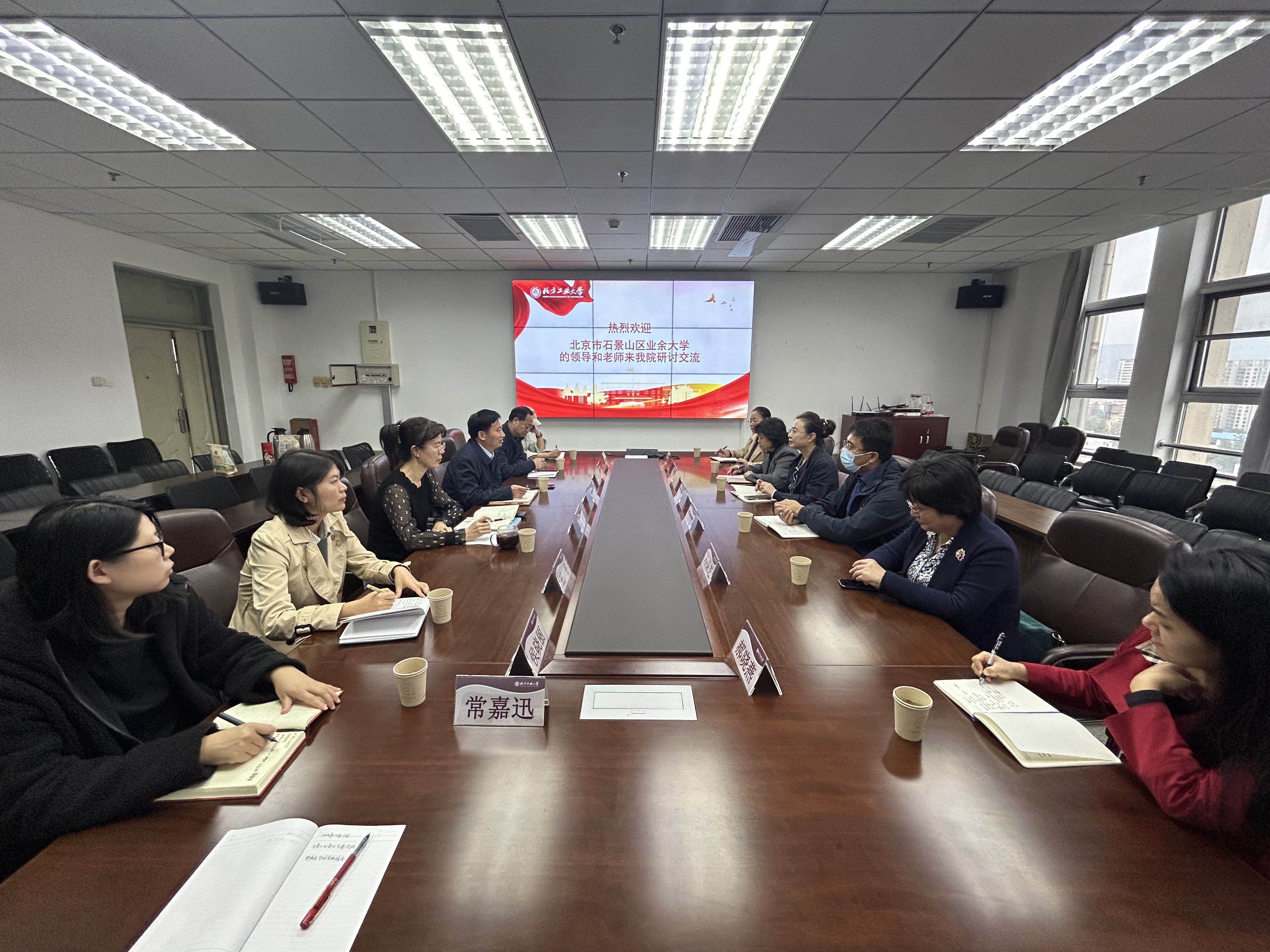 10月17日下午,石景山区业余大学副校长刘荣等一行六人到我校Beat365正版唯一官网必一调研交流,Beat365正版唯一官网必一全体教职工参加了交流座谈会。